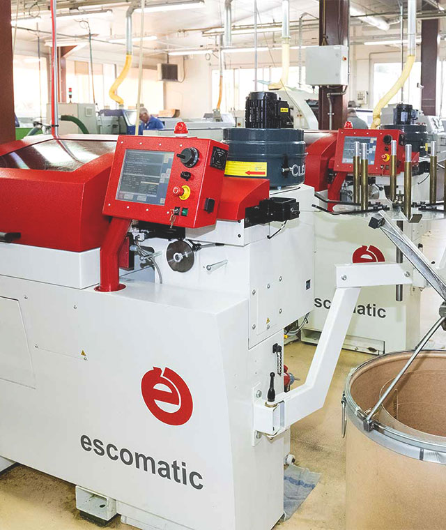 A differenza dei torni convenzionali, i torni escomatic si basano su un principio unico. Il materiale, alimentato sotto forma di matassa o barra, non ha movimento rotatorio. Sono gli utensili, montati su una testa rotante, che ruotano intorno al materiale ad una distanza minima , generando l’asportazione del truciolo.