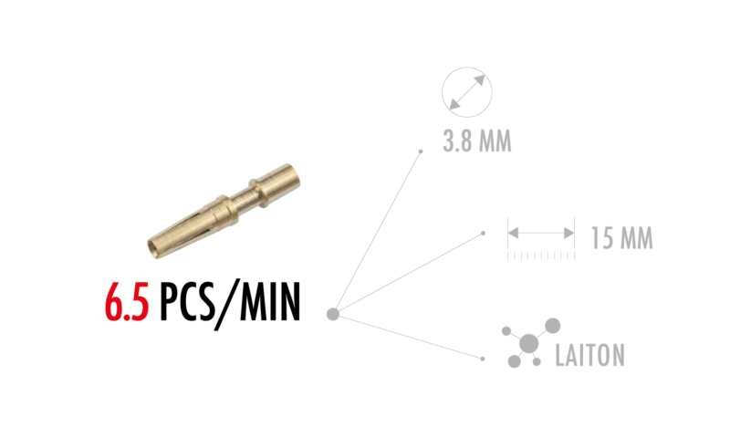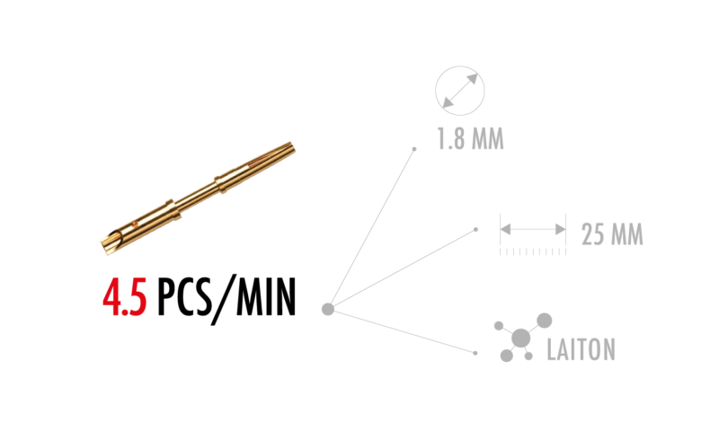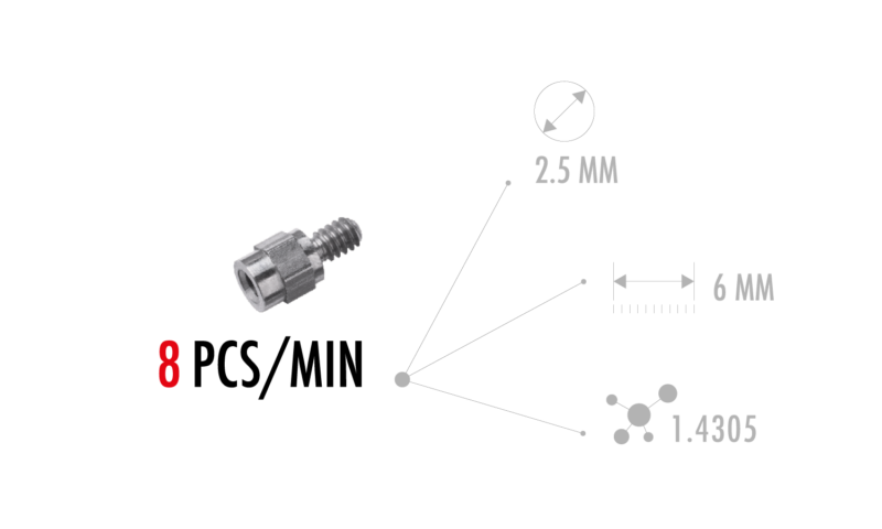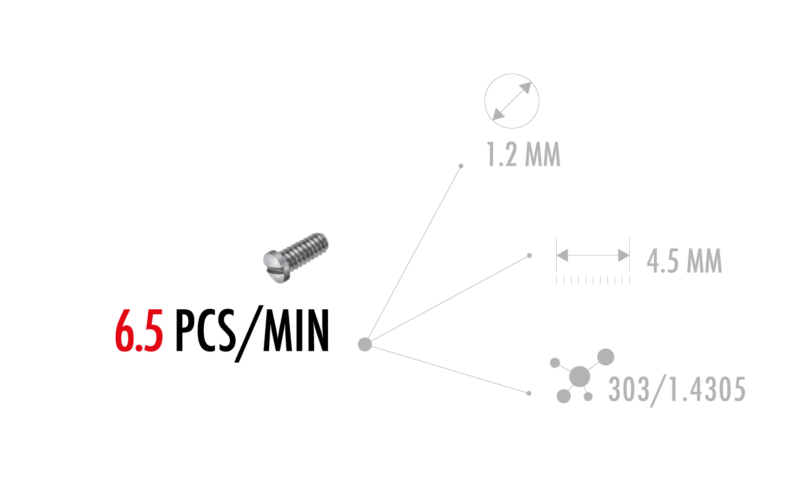 L’ ESCOMATIC D5 CNC ULTRA è un tornio da matassa di filo sviluppata sulla base della D2 CNC. Oltre alle operazioni di tornitura e sulla base del principio ben conosciuto dagli utilizzatori delle Escomatic serie NM, è possibile lavorare la parte anteriore e posteriore del pezzo simultaneamente. Sono infatti presenti 3 mandrini assiali per la foratura e la filettatura in bussola. Durante la tornitura e la lavorazione frontale, il pezzo già troncato può essere lavorato in ripresa posteriore tramite due mandrini assiali ed uno trasversale. Con una velocità di 12.000 giri/min. della testa portautensili e di 18.000giri/min dei mandrini frontali e posteriori, questa nuova macchina coniuga le performance di tornitura della D2 CNC, con la possibilità di realizzare controperazioni di qualità con grande rapidità e precisione.