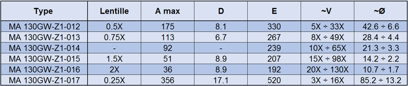 I microscopi MA 130 GW Zoom possono essere  equipaggiati di serie con i reticoli R 2-1;4-2;R9a;R7.