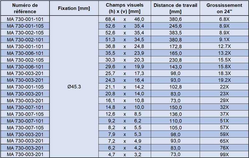 Ottica ad alta risoluzione per un’immagine di qualità superiore MA-730-00