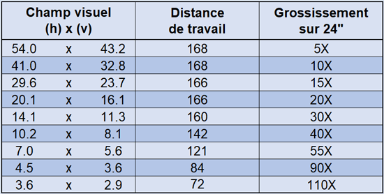Campo verticale 2.9- 43.2 mm   Ingrandimento da 5 a 110 X.