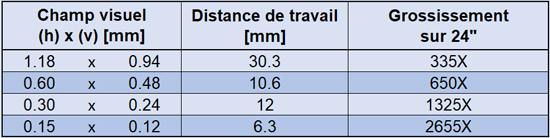 • Campo visivo da 0,15x 0,12  a 1,18x 0,94 mm